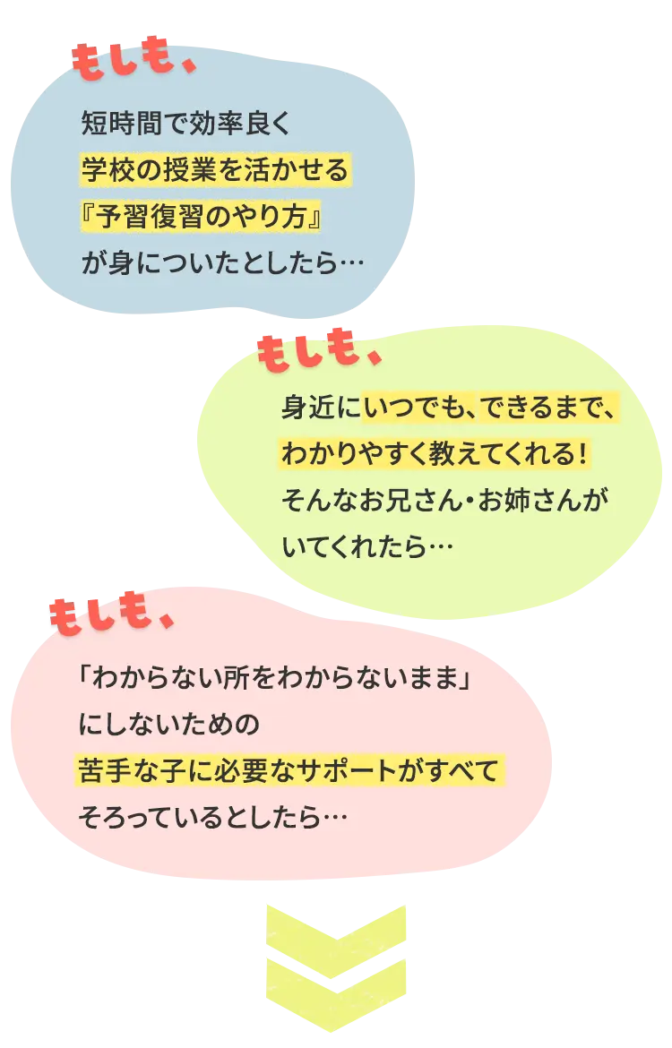 お子さん一人ひとりに合わせた【勉強のやり方】は学校や塾では教えてもらえません。