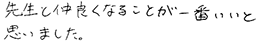 受ける前は、ほめないで、しゅくだいが多めに出て、たいへんな感じだったけど(大変なんじゃないか?と思っていた)、受けてみて、めっちゃほめてくれたり、(勉強が)分かった。先生の感じがすごい、よかった。やるきを見つけてくれる言い方がとてもすごくテクニックだった。