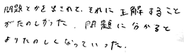 自分のどこがだめなのかやり方が分からなかったけれど、先生がアドバイスをくれたおかげで勉強のしかたや問題のやり方を分かりやすく教えてくれたのでよかったです。