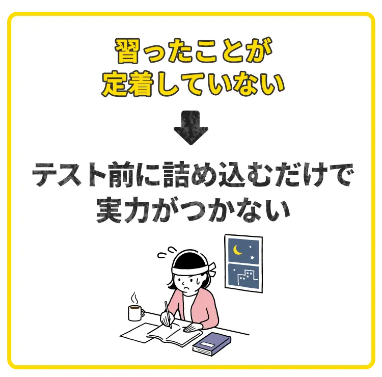 これでは、塾や家庭教師でいくら良い指導を受けてもテストの点数には結びつきません。