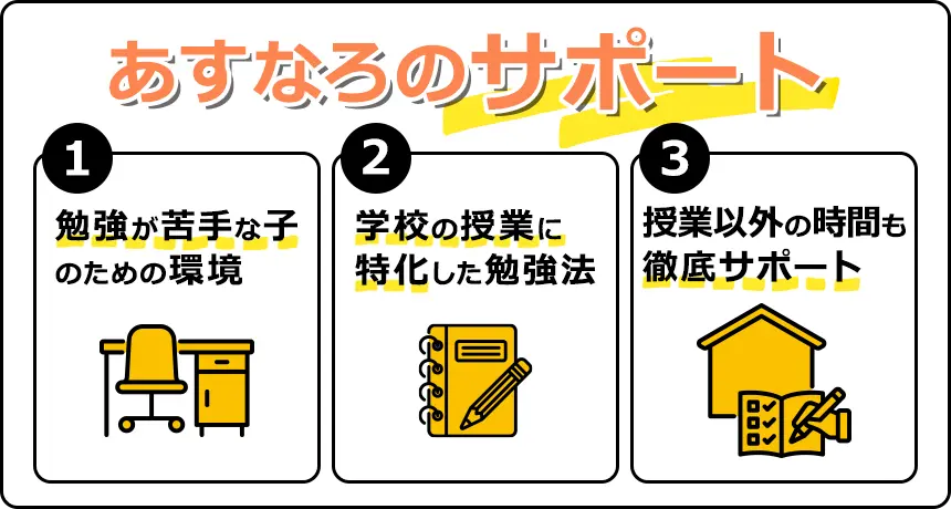 - 問題ありません。学校の進度に合わせて、今必要なところから一緒に整えていきます。