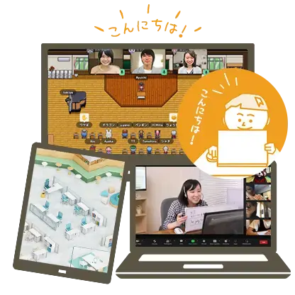 バーチャルな教室に自分のアバターで参加。開始時間になるとLINEでお知らせが届き、他の生徒と同じ時間に合わせて一緒に勉強しています。