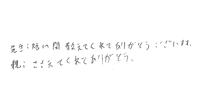 - 先生への感謝の気持ち・お子さんへのねぎらい・合格にまつわる話など